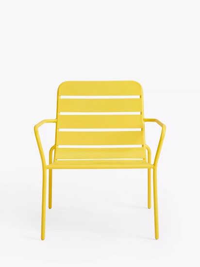 - This modern lounge chair is made from sturdy steel with a durable, weather-resistant powder coating. Each chair can support up to 25 stone (160 kg) and is easy to care for, requiring only a quick wipe with warm soapy water to keep it clean. Combines with other metal garden furniture in the range.
