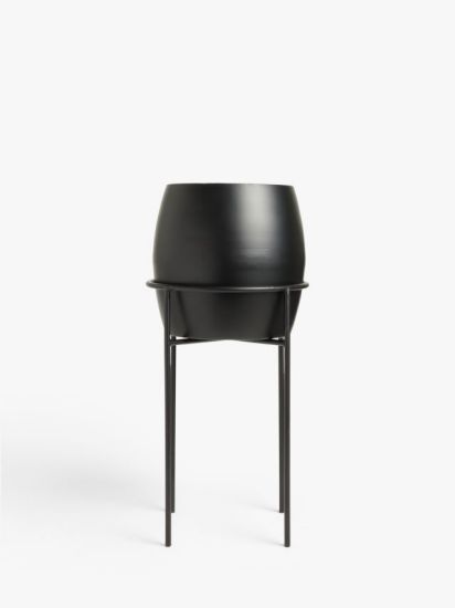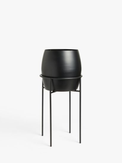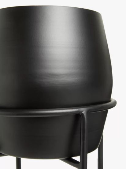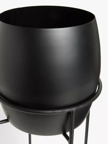 Handcrafted from iron with a powder-coated finish, this planter rests on tall legs, adding a sense of height to a space.