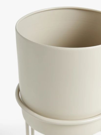 - Handcrafted from iron with a powder-coated finish, this plant pot sits on tall legs, adding a sense of height to a space.