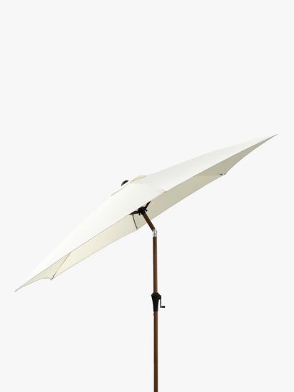 - This garden parasol offers targeted sun protection with an easy-winding mechanism and adjustable tilt. The parasol has a rain canopy with UV50+ sun protection and a corrosion-resistant aluminium pole with a stylish wood grain effect. Shock-resistant ribs complete this sturdy design.