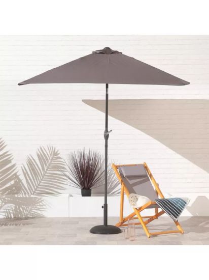 - Designed to be simple to use, this parasol features a wind-up crank and tilt mechanism to control shade. With a sleek weatherproof powder-coated charcoal grey steel frame and four steel ribs, this parasol is both durable and stylish. The 160g/m2 canopy provides ample shade, while the vents enhance airflow for a more comfortable experience.