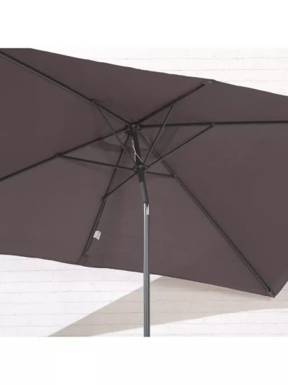 - Made with a sleek powder-coated charcoal grey steel frame and six sturdy steel ribs, this parasol combines durability and elegance. The 160g/m2 canopy provides wide coverage, while vents enhance airflow to keep you cool on hot summer days. Use the tilt mechanism to control shade.